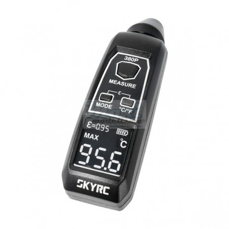 O termómetro infravermelho compacto SkyRC ITP380 é usado para a medição segura e sem contato da temperatura de superfícies especiais, como motores, carregadores ou veículos inteiros. Comparado com seu antecessor, o SkyRC depende de um sensor de termopilha TO-46 clássico. O elemento sensor, que consiste em 116 elementos de pequenos termopares com uma área ativa de 545 µm de diâmetro em um chip de silício, absorve a energia e, assim, gera o sinal de saída. Dependendo da superfície, no entanto, o valor medido pode variar apesar da mesma temperatura. Para isso, o termômetro pode ser ajustado a essas diferentes superfícies para mostrar um resultado mais exato.