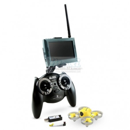 The Inductrix FPV is equipped with a 25mW video transmitter capable of transmitter on Fatshark channels 1 through 8 and all Raceband channels so you can race several pilots at once. You can select channels from the easy to use button atop the body of the Inductrix. The camera is very lightweight and perfectly protected in the body housing. The antenna we've chosen for video transmission is a dipole and designed with durability in mind. Video range of the Inductrix FPV is nearly 100 yards line of sight and more than adequate to fly in any large building or home.