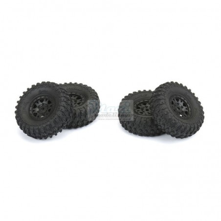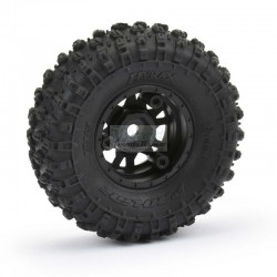 The Hyrax 1.0" tire comes conveniently pre-mounted to our Mini Impulse Black Internal Bead-Loc 1.0" Plastic 7mm Hex wheels! Yes, these are true 3-piece Bead-Loc wheels! Just like Pro-Line's 1:10 size Impulse wheels, these all-new Mini Impulse wheels are designed to not only look scale but are super easy to use by only requiring 3 screws per wheel for mounting tires. The unique 3-piece plastic wheel design bolts together in the back and locks on to Pro-Line's Hyrax 1.0" Crawling Tires and also works with many existing 1.0" tires for the SCX24™. If you own a SCX24™, then Pro-Line's new pre-mounted set of Hyrax 1.0" Tires are a must have! Get your own set today!